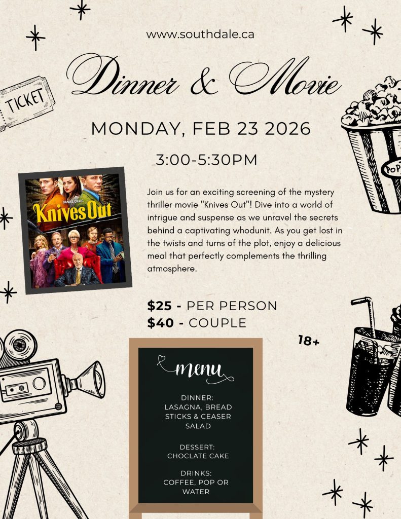 Join us for an hour of Line dancing coming back to Southdale Sunday nights 6:30pm to 7:30pm – starting January 25th, 2026 – February 15th, 2026 for four weeks. I’m quite excited about this as i (Regina) just returned from Arizona and have brought back some topnotch line dances called “Glass of Wine” what can be better than that! All are welcome including singles and couples. Some dances can be done optionally in couple form. Hope to see you there!